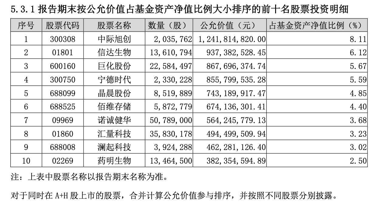 1月21日晚间,知名基金经理谢治宇管理的公募产品披露2025年四季报。